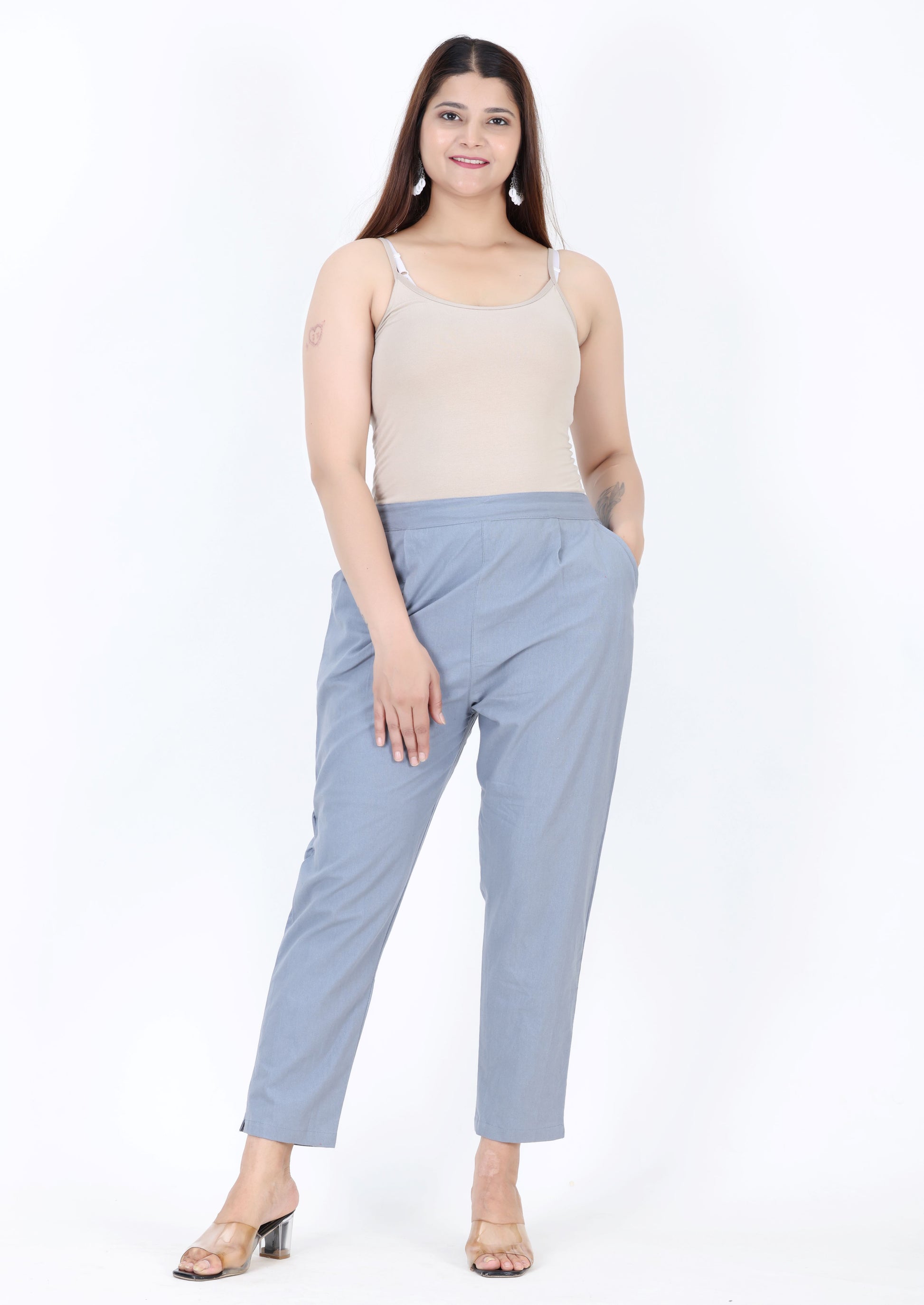 Indulge in timeless sophistication with Ellyes Signature Cotton Trousers, exquisitely tailored for women who appreciate understated elegance and effortless comfort.